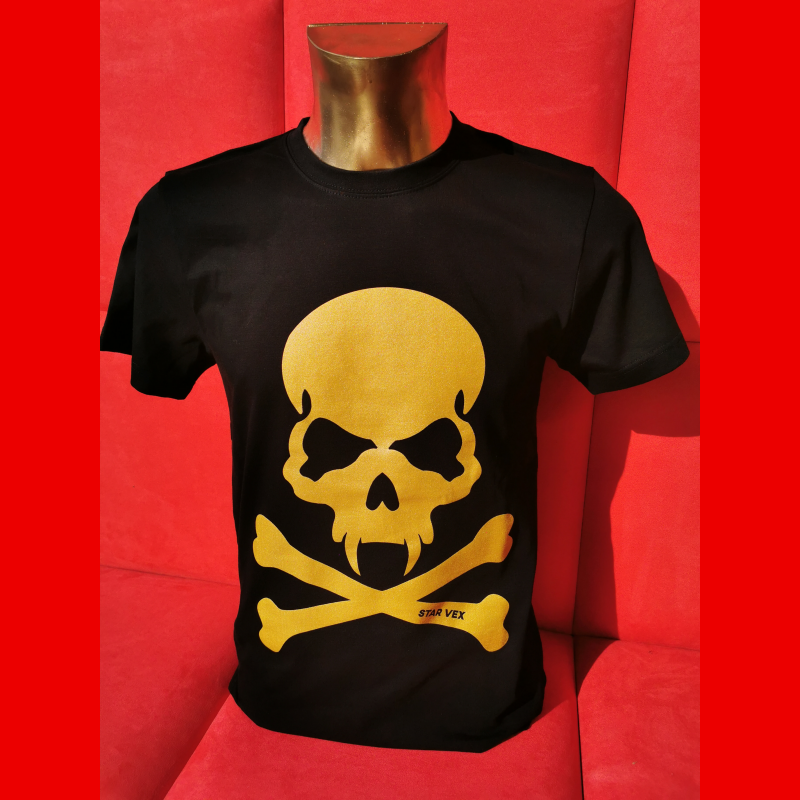 KOSZULKA CZARNA T-SHIRT CZASZKA WAMPIR ZŁOTA